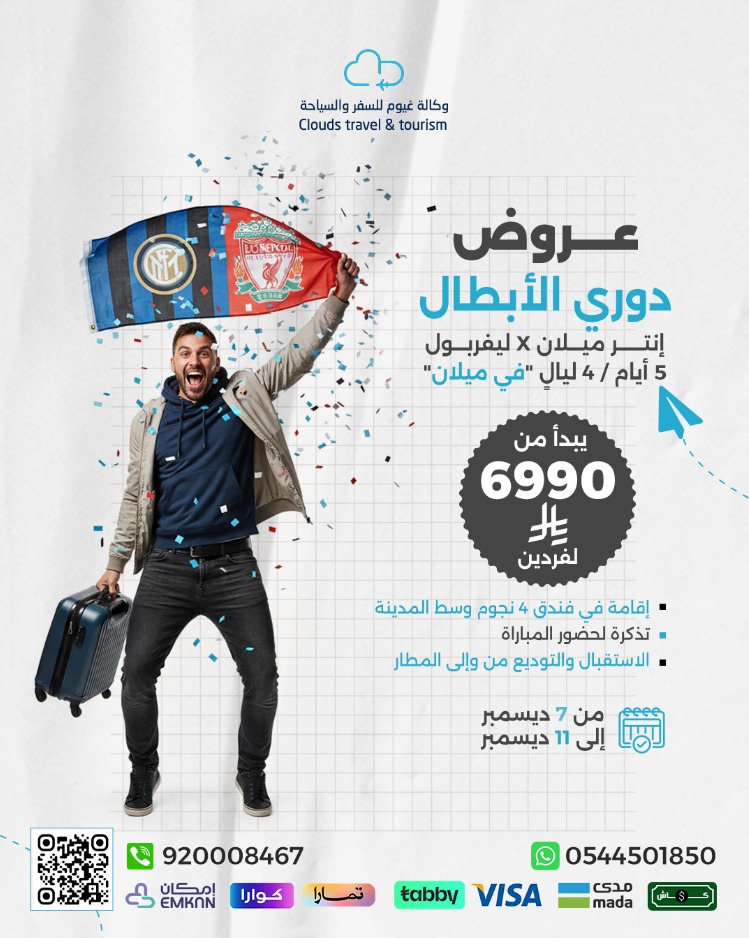 الطيران الدولي - تذاكر دخول الاماكن السياحية - الغداء و العشاء